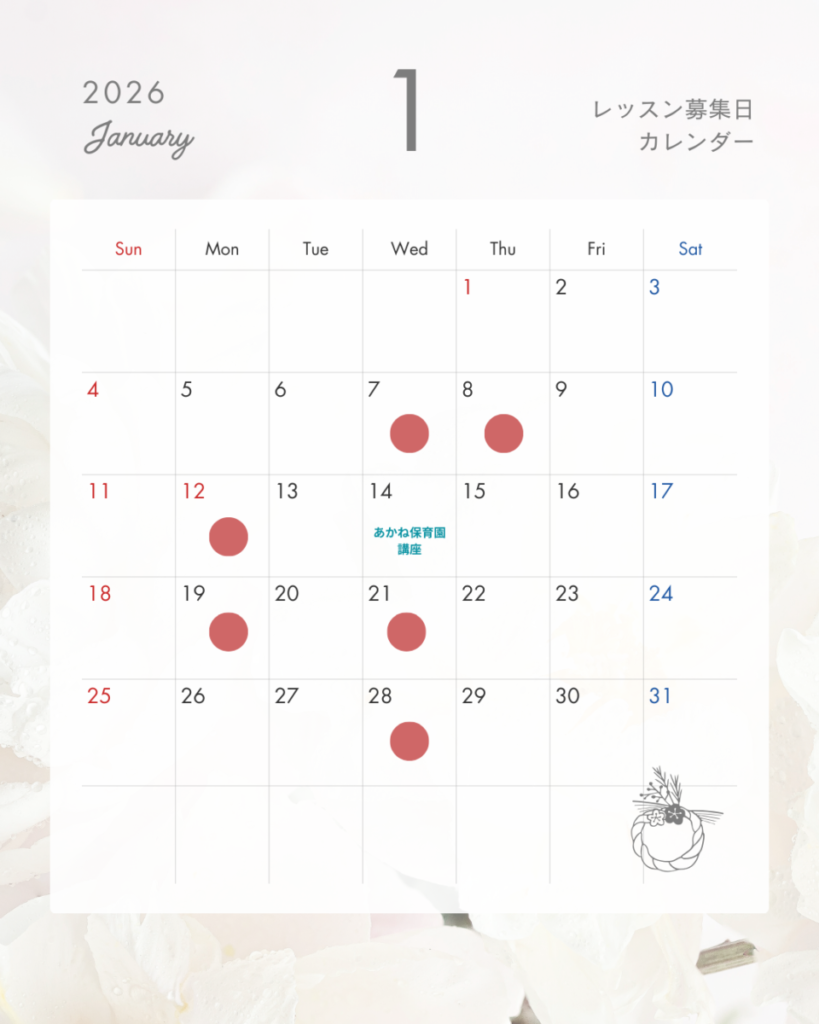 1月はレッスン募集日も多く取れそうです♪はじめましての方も、お久しぶりの方も、遊びにいらしてくださったら嬉しいです♪